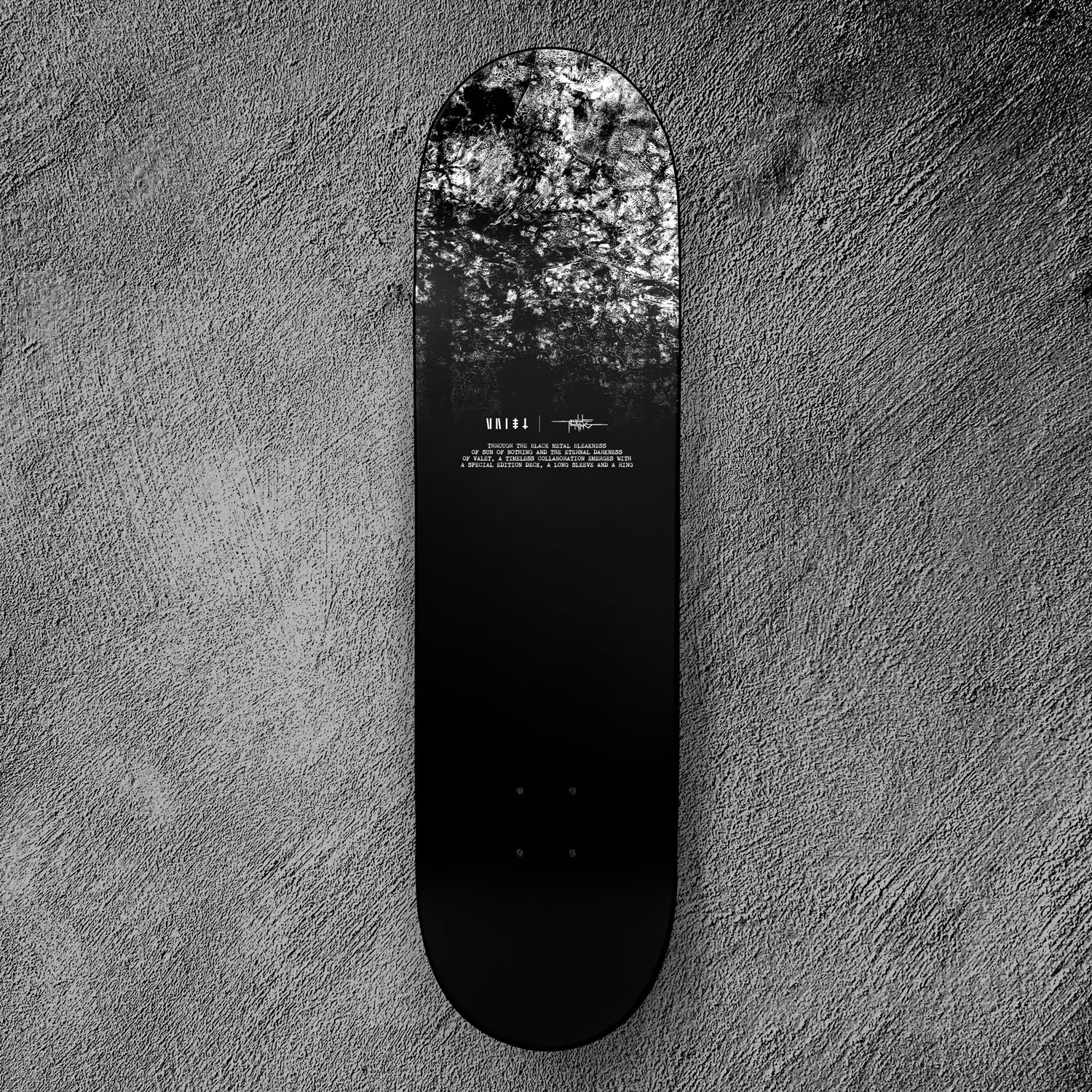 This limited edition deck features a live photo of Sun of Nothing, capturing the band in their element. Overlaid with Valet’s signature graphic language, it reflects the shared energy between heavy music and skateboarding.